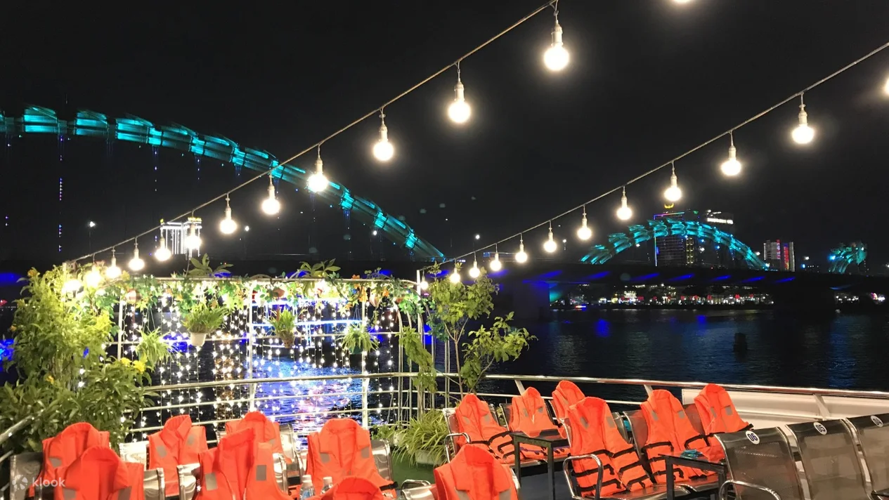 다낭의 밤은 낮과는 또 다른 매력이 있어요. 특히 한강을 따라 펼쳐지는 야경은 직접 보면 정말 황홀합니다. 이번 여행에서 선택한 미쑤언 크루즈는 45분 정도의 짧은 코스였지만, 도시의 불빛과 음악, 그리고 강 위를 부드럽게 흐르는 배의 감성이 어우러져 생각보다 훨씬 인상 깊은 시간이었어요. 특히 용다리 불쇼와 맞물리는 시간대에 탑승하면, 강 위에서 불을 뿜는 용다리를 정면으로 감상할 수 있어요.