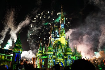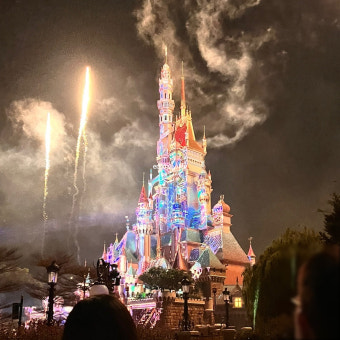 미키와 함께 춤추고, 성 위로 터지는 불꽃으로 마무리하는 하루